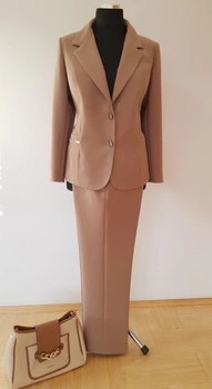 BIZNESOWY KOSTIUM ZE SPODNIAMI BEŻ - CAPPUCCINO