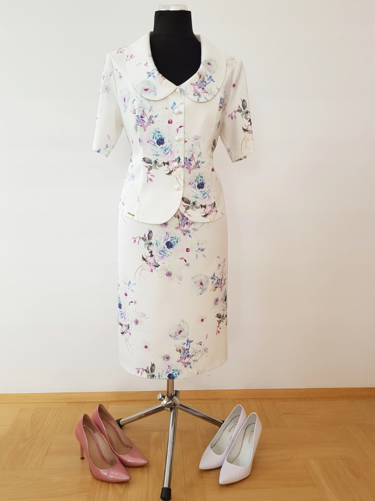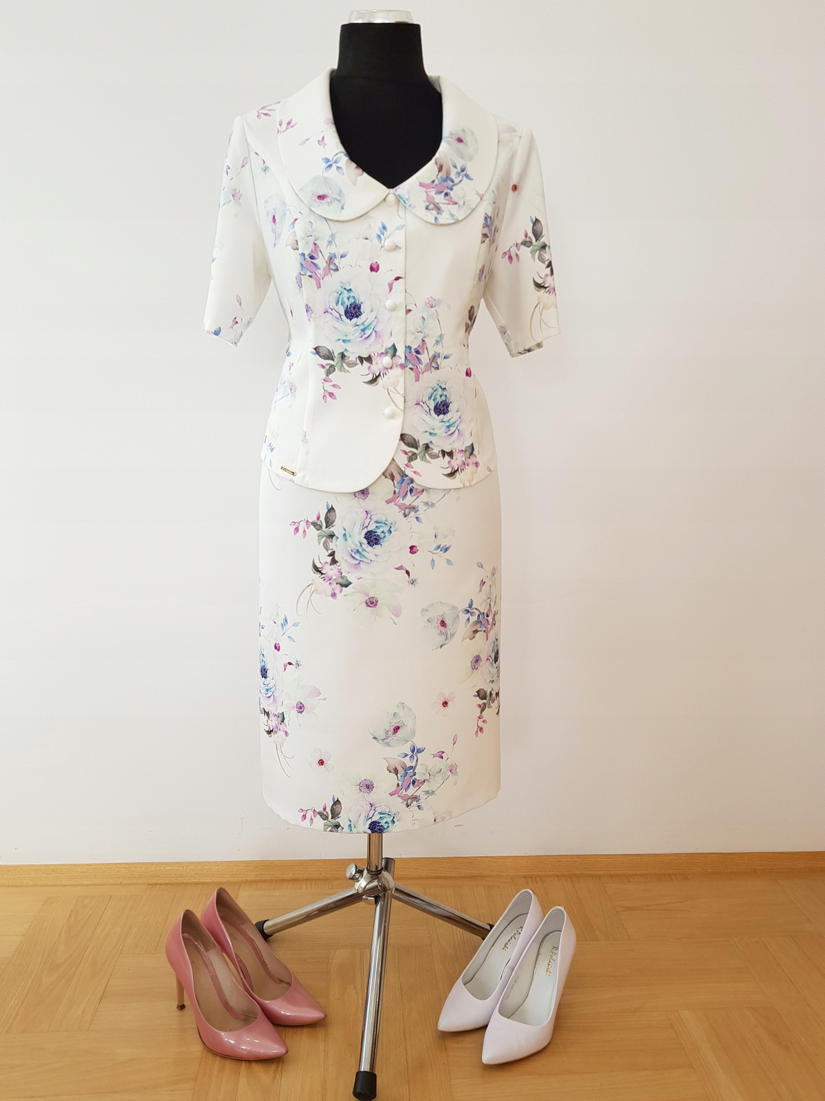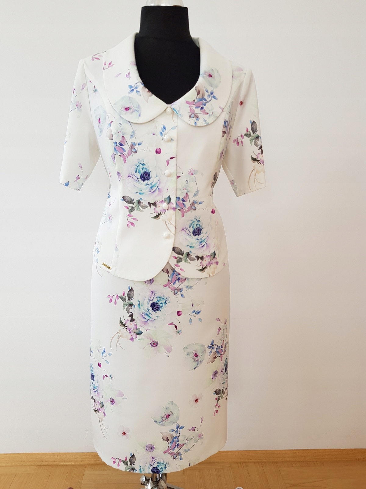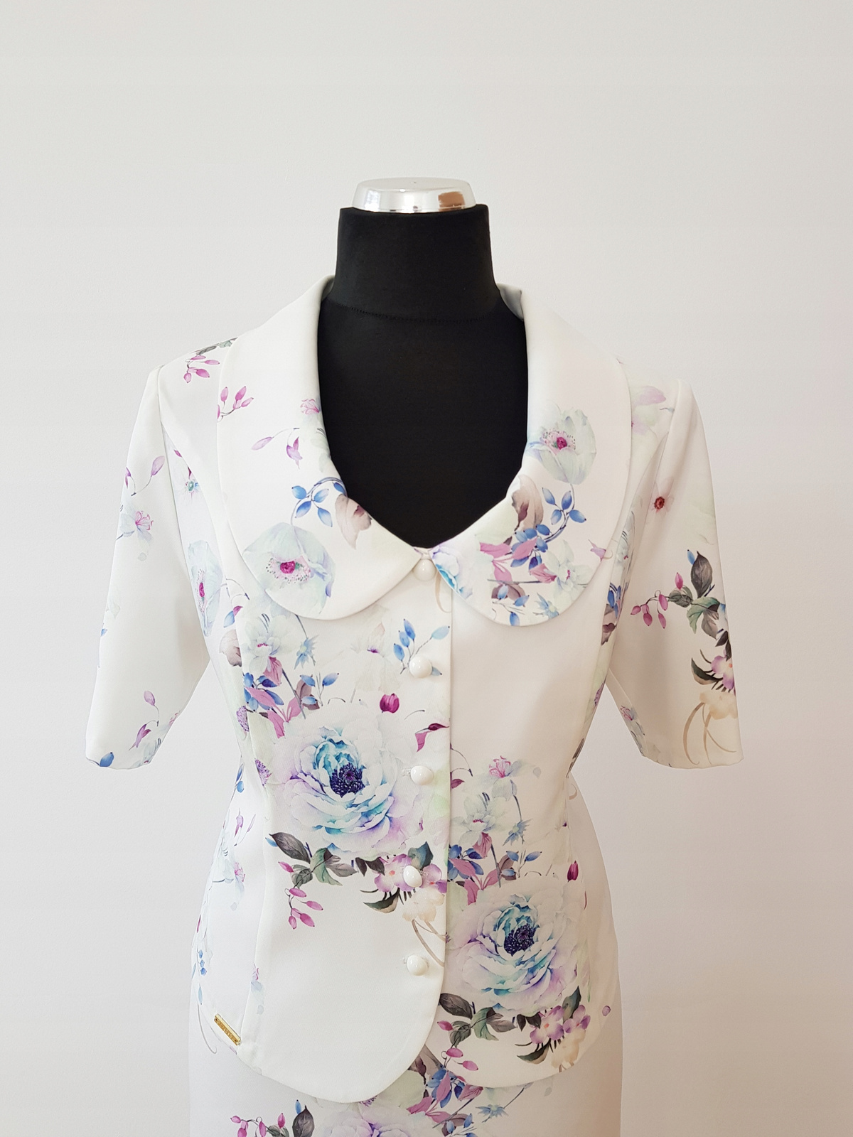 Garsonka uszyta z tkaniny kostiumowej ,,madame" z dodatkiem laykry.