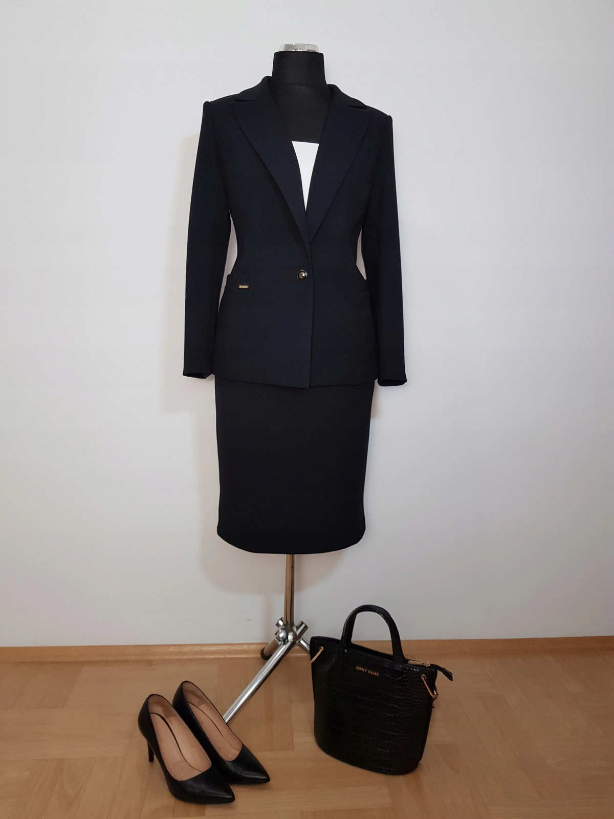Biznesowy kostium uszyty z tkaniny kostiumowej ,, Jaguar " w kolorze czarnym.
