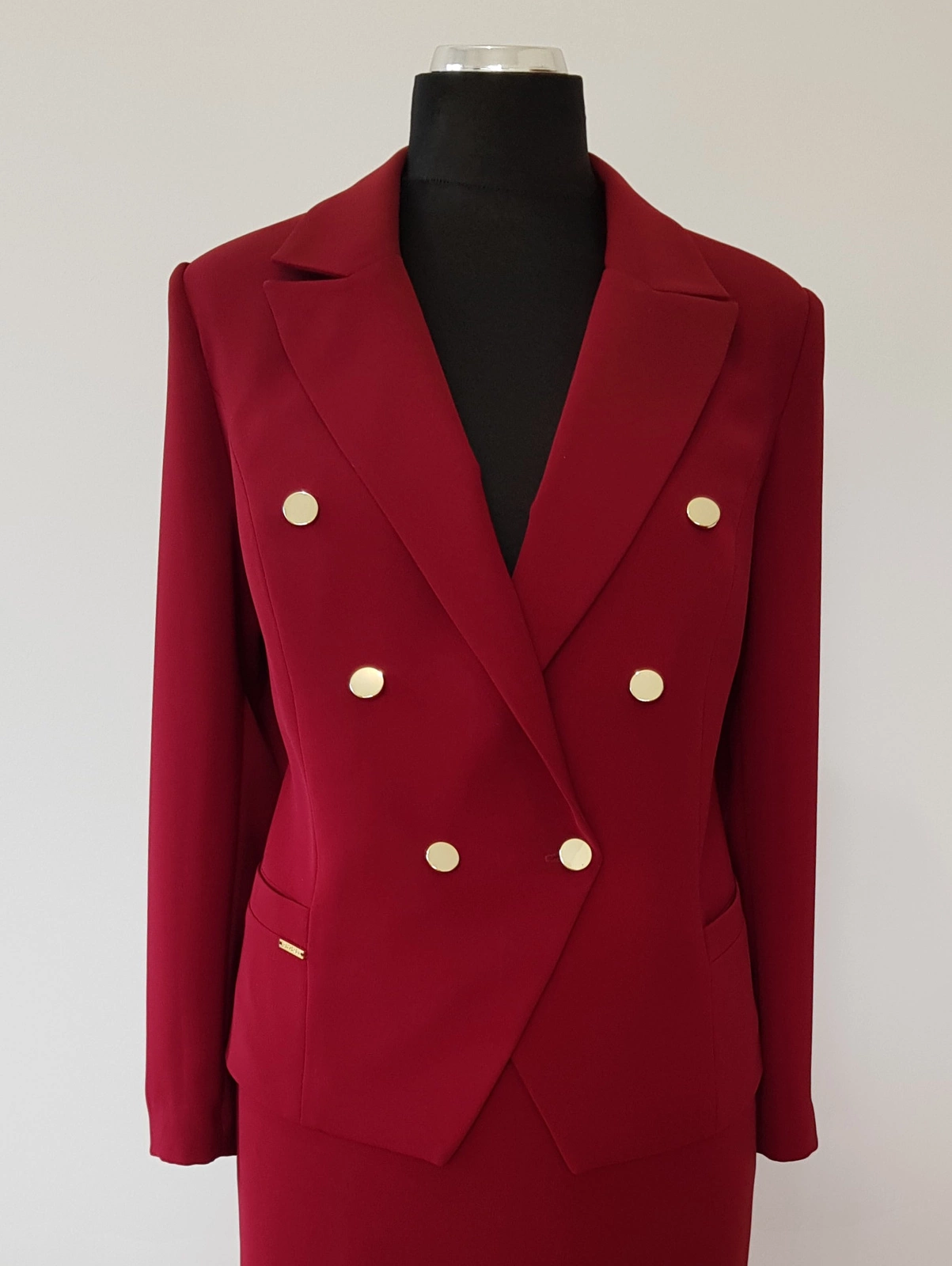Bardzo ładny klasyczny żakiet uszyty z kostiumowej tkaniny Jaguar, kolor: bordowy
