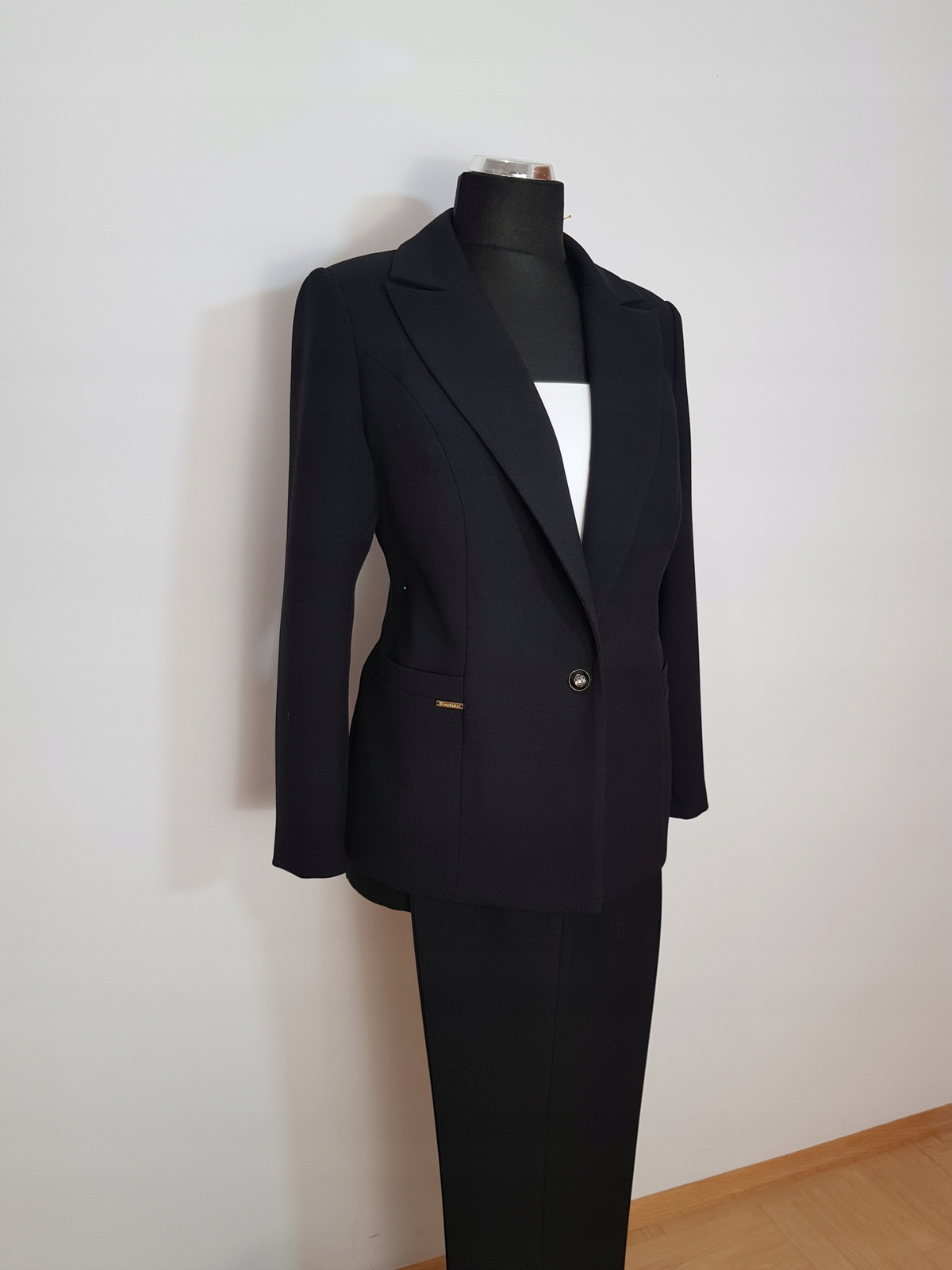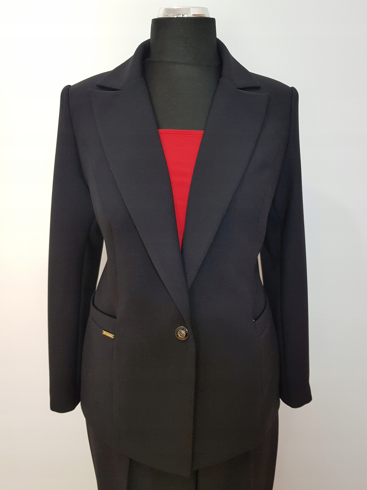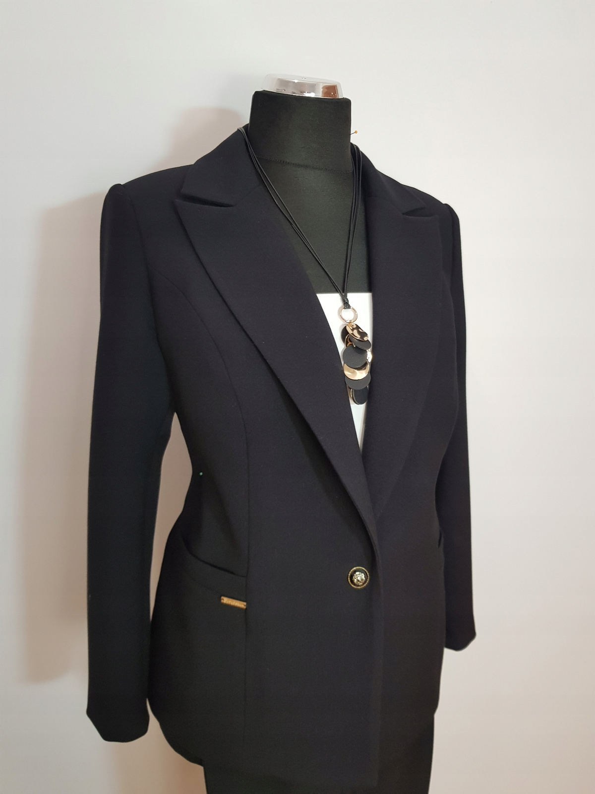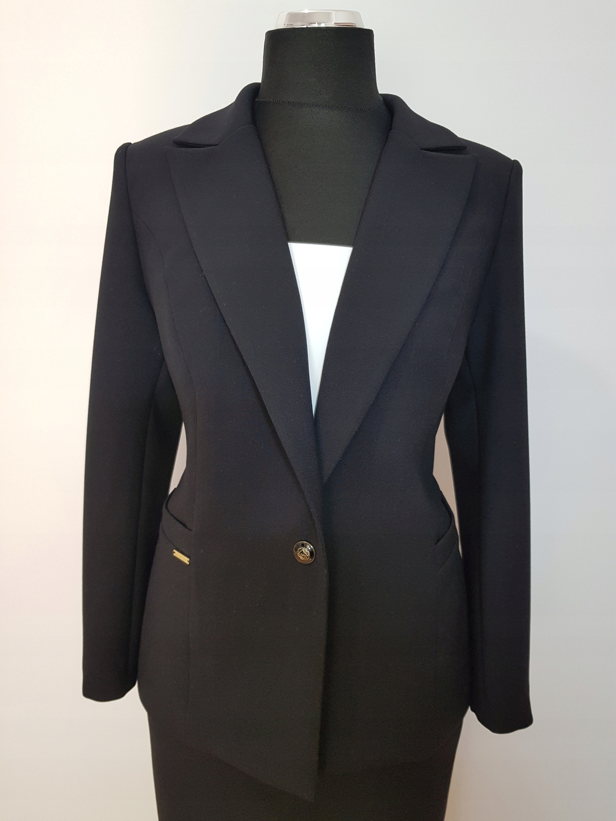 Bardzo ładny biznesowy żakiet uszyty z tkaniny kostiumowej ,, Jaguar " w kolorze czarnym.