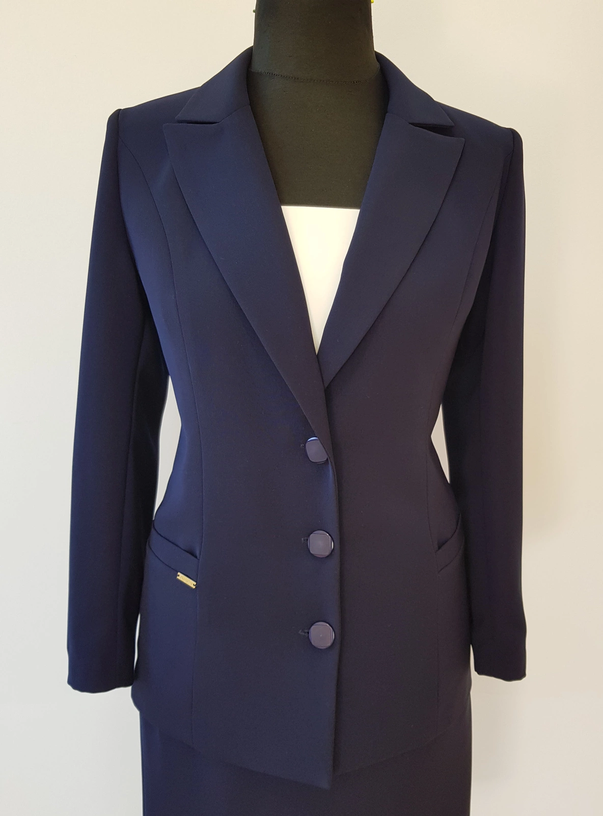 Bardzo ładny biznesowy żakiet uszyty z tkaniny kostiumowej ,, Jaguar " w kolorze granatowym.