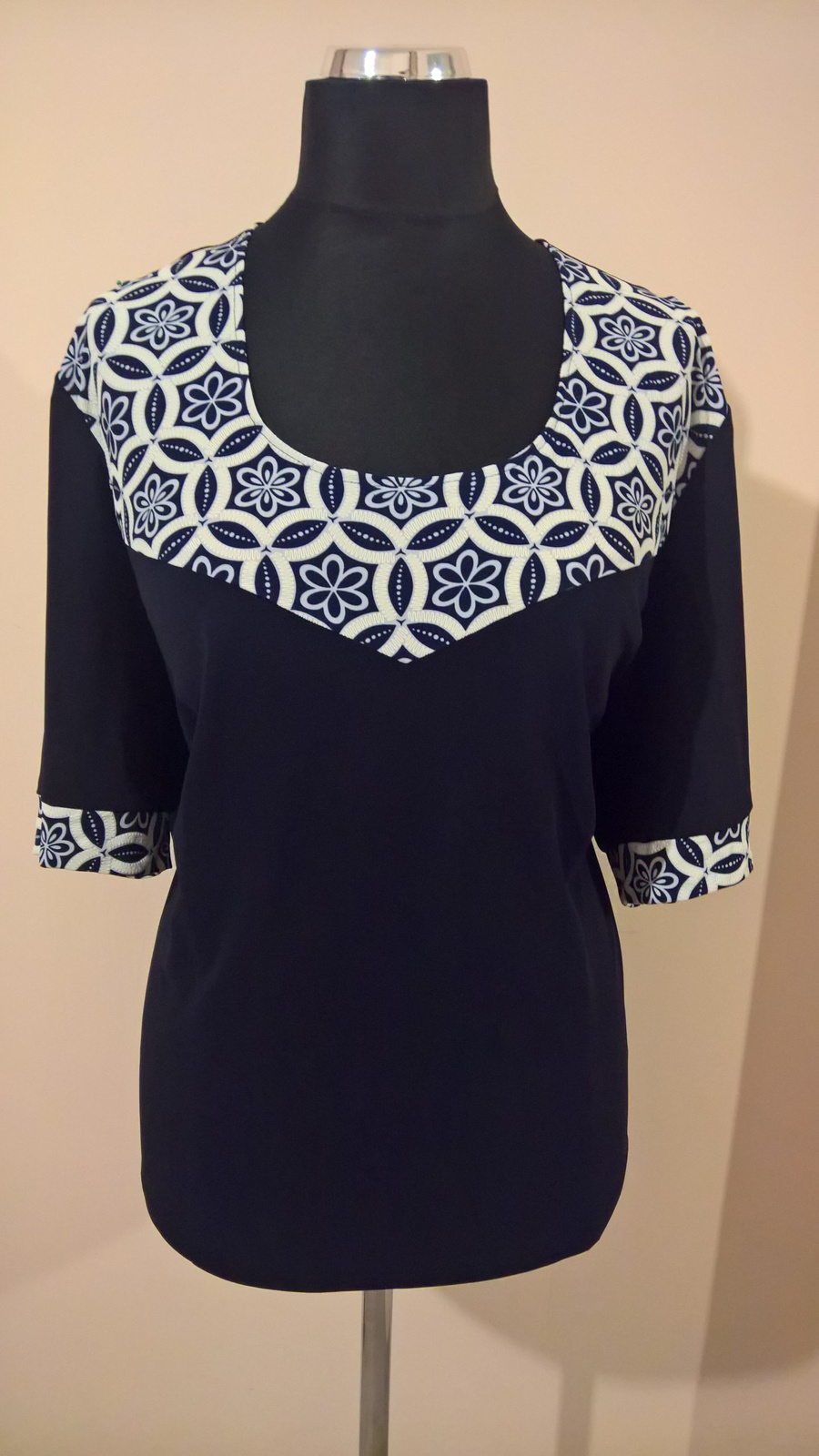 Bluzeczka ma ładny dekolt, cięcia francuskie.