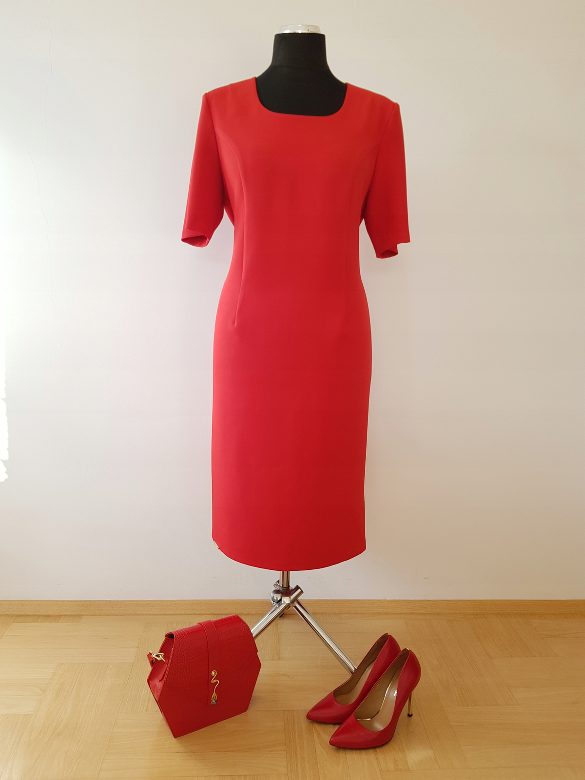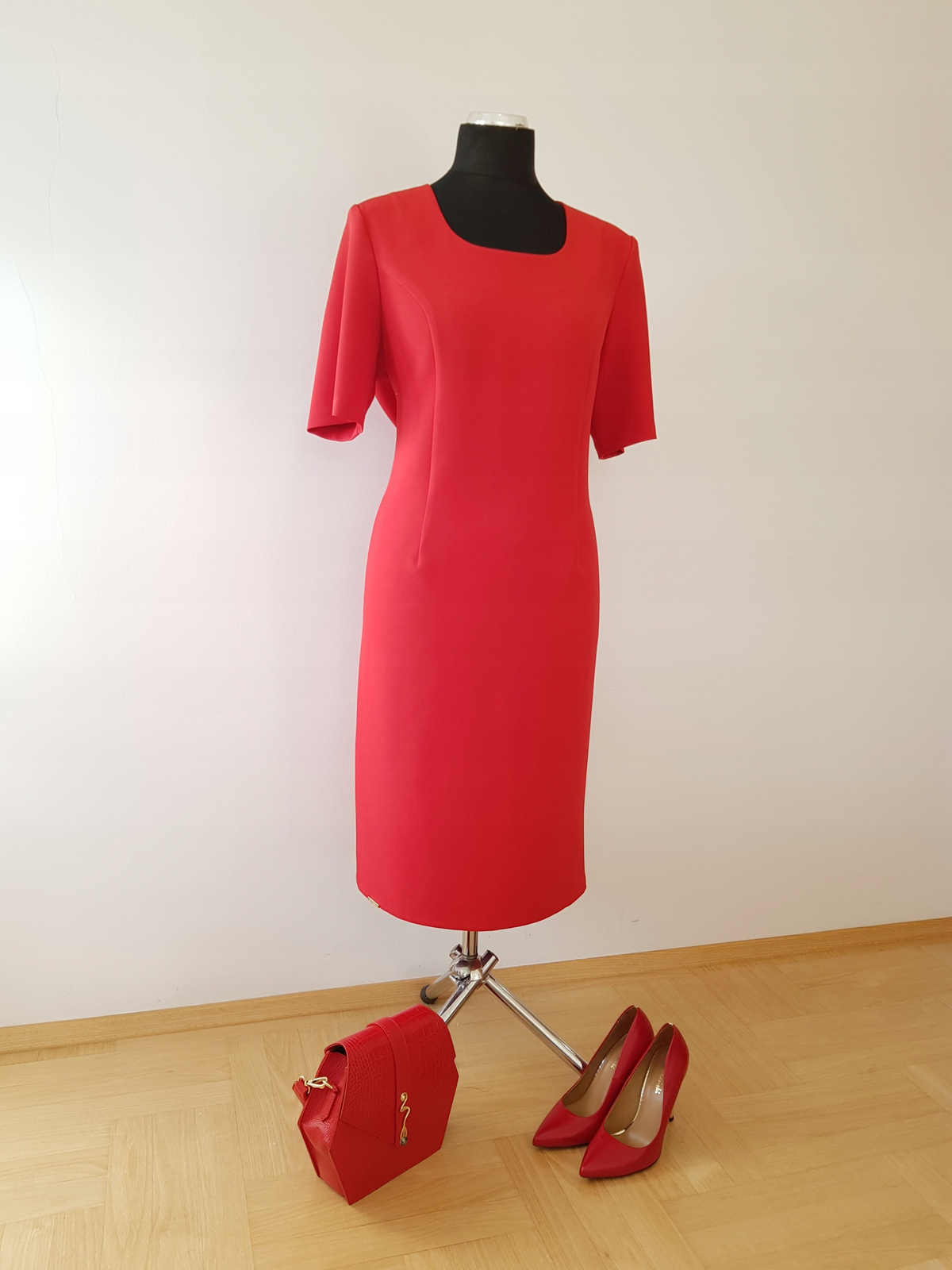 Sukienka uszyta z mięsistej, elastycznej tkaniny ,, KORELJA" uszyta bez podszewki.