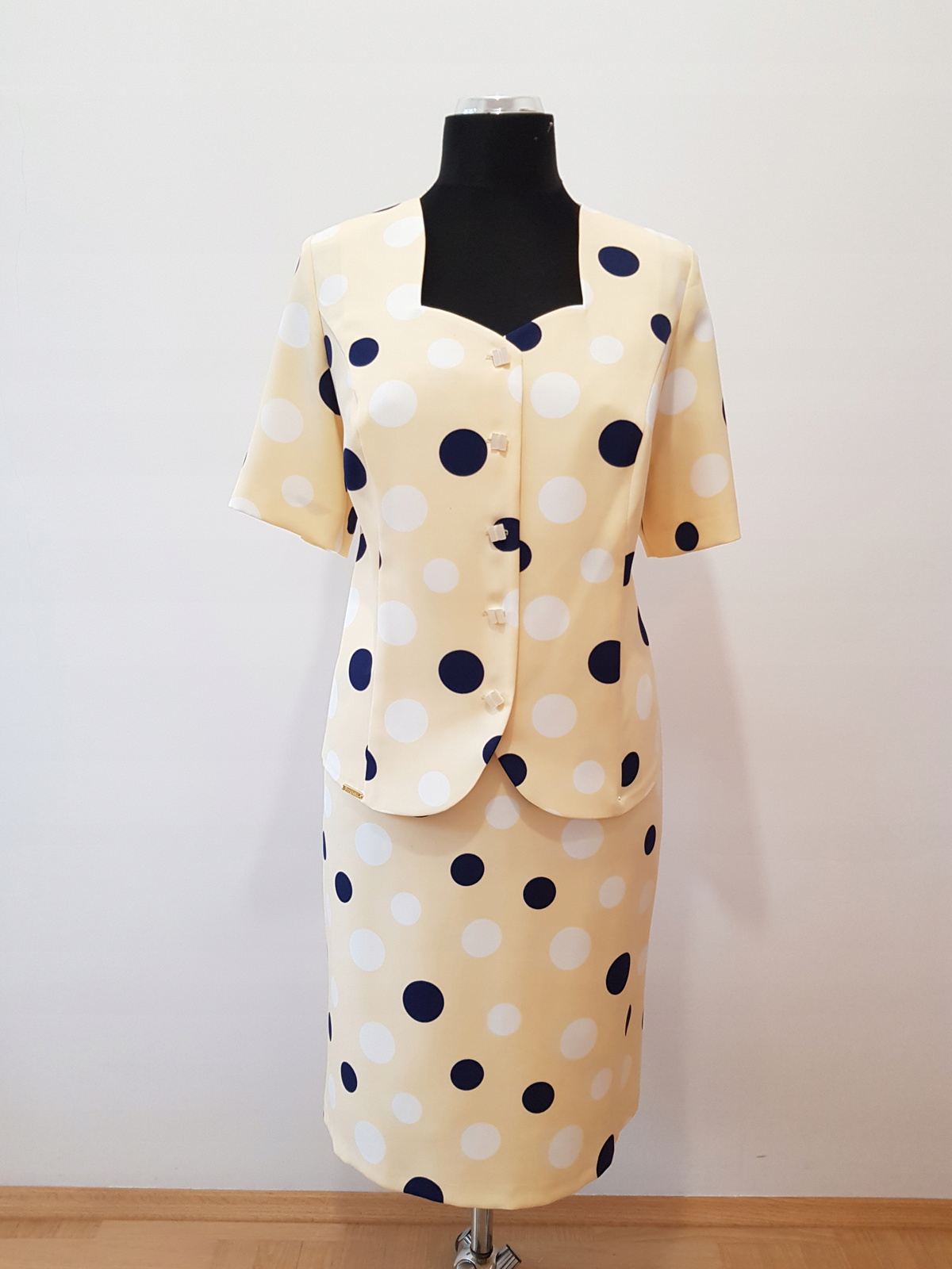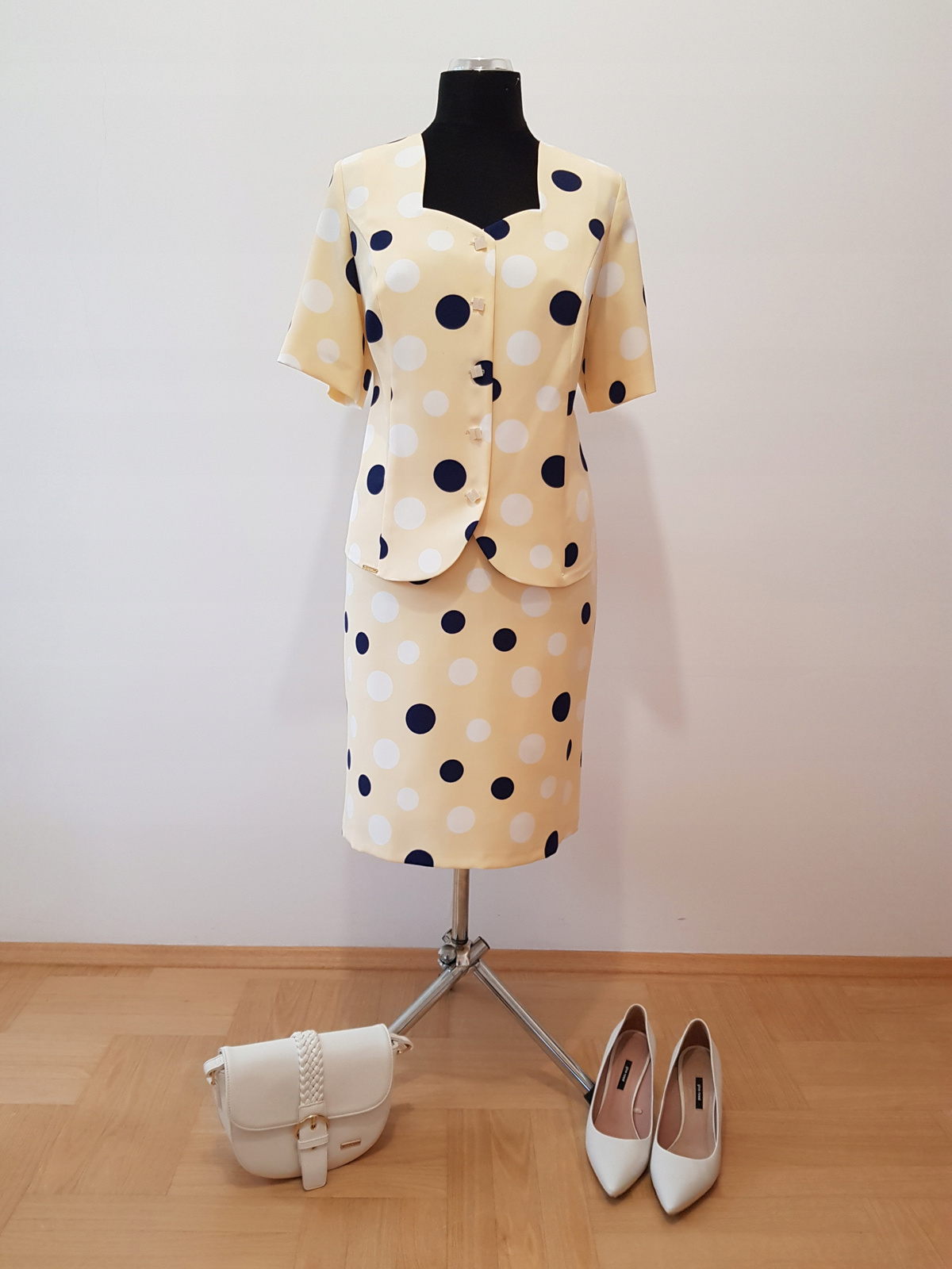 Garsonka uszyta z tkaniny kostiumowej ,,madame" z dodatkiem laykry.