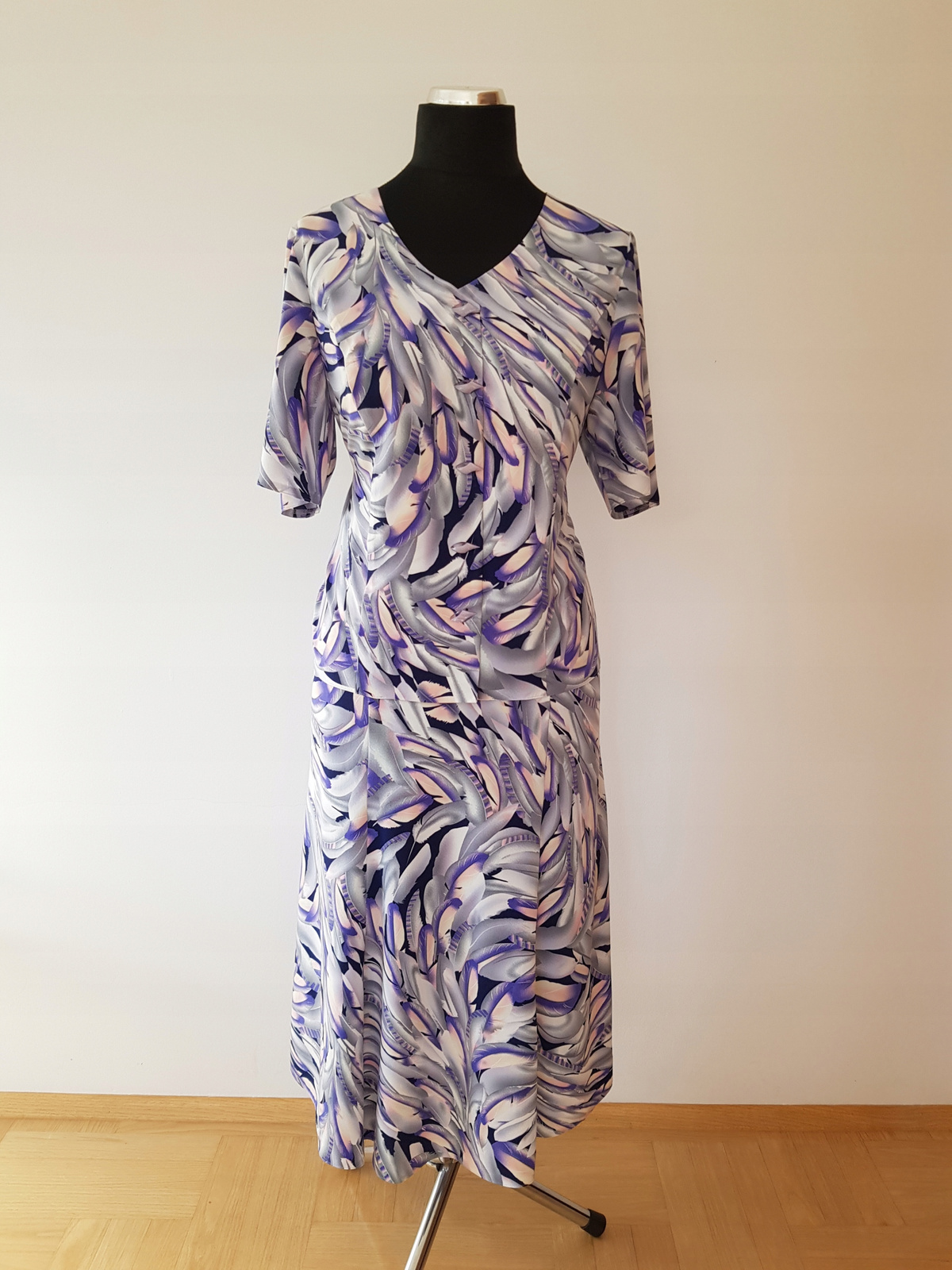 Tkanina: 70% wiskoza, 30 % poliester . Podszewka pod spódniczką: 100% wiskoza.