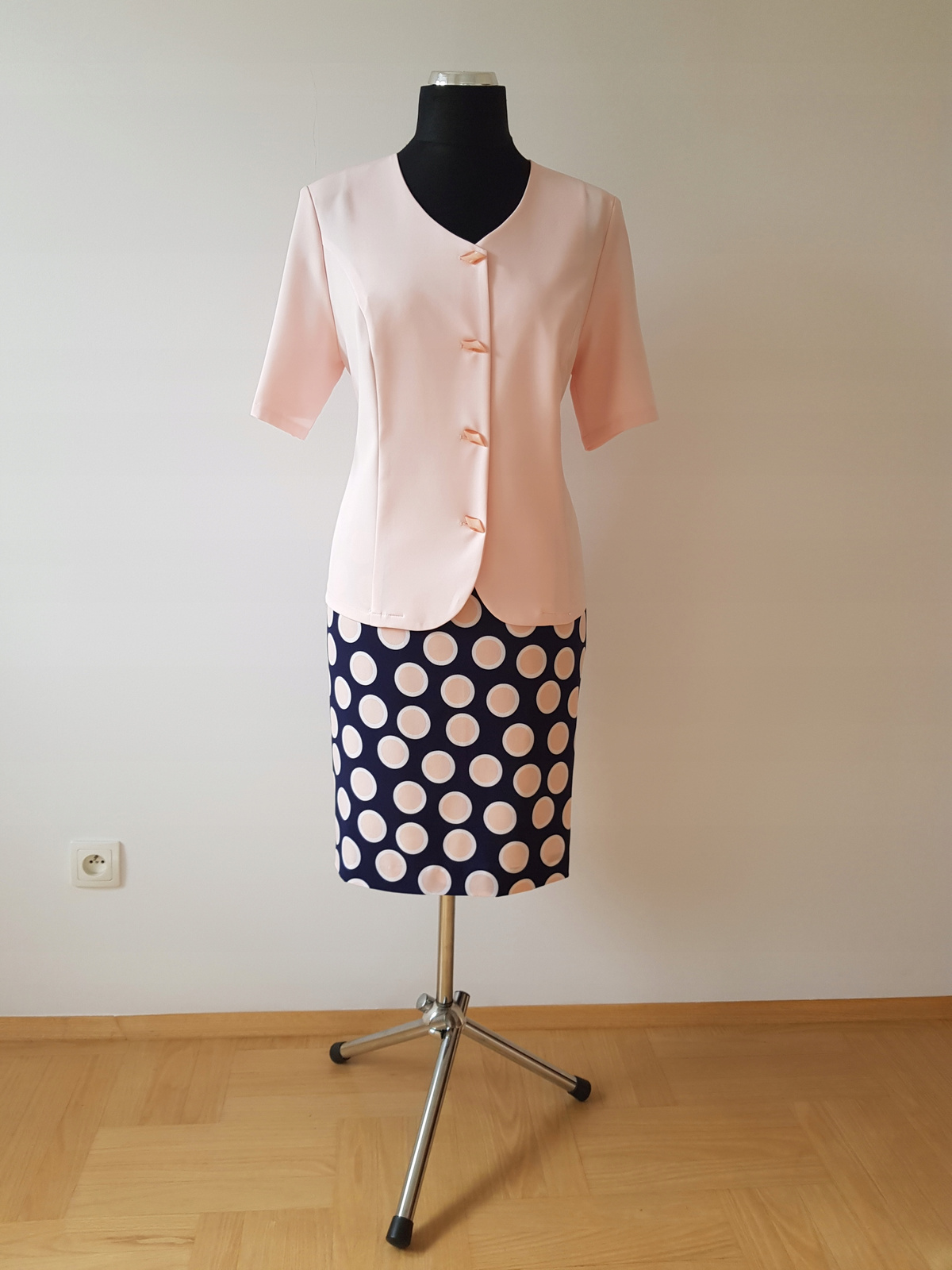 Dopasowując rozmiar żakietu do sylwetki należy dodać min. 2 cm do obwodu bioder oraz 4 cm do obwodu biustu