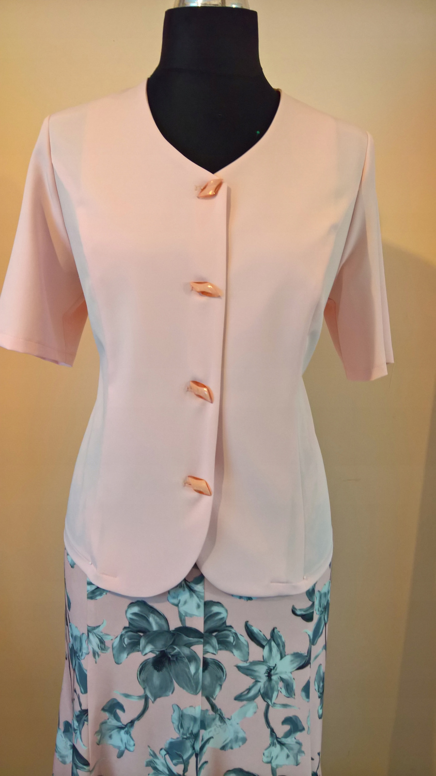 Żakiet uszyty z tkaniny kostiumowej ,,MADAME" w kolorze jasno różowym ( łosoś).
