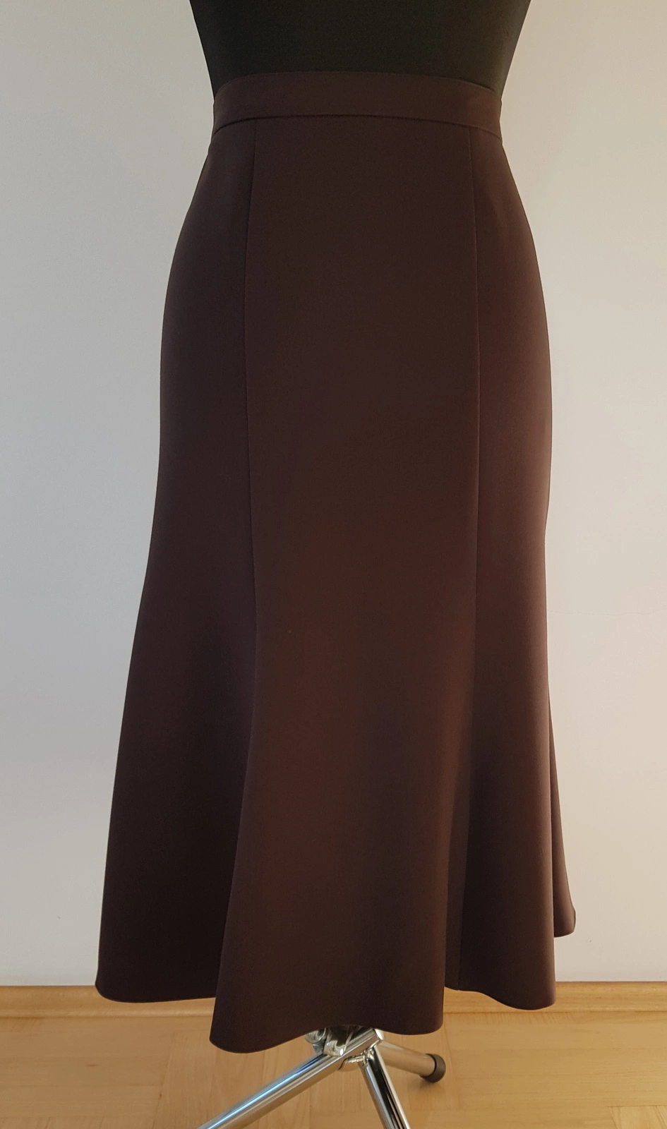 Fason wyszczuplający sylwetkę ( wąska do kolan i poszerzona do dołu). Gorąco polecam!