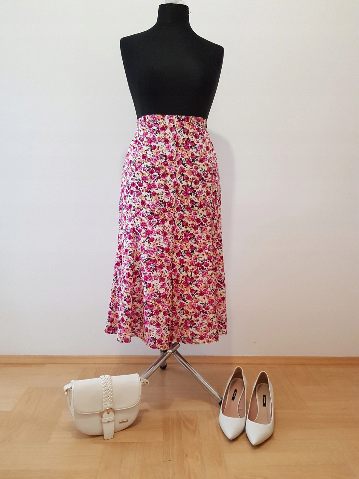 Spódniczka uszyta z lejącej zwiewnej tkaniny poliwiskoza.