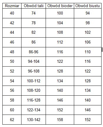W rozmiarach 48-62 do paska po bokach wszyta jest gumka co umożliwia dopasowanie spódnicy do talii.