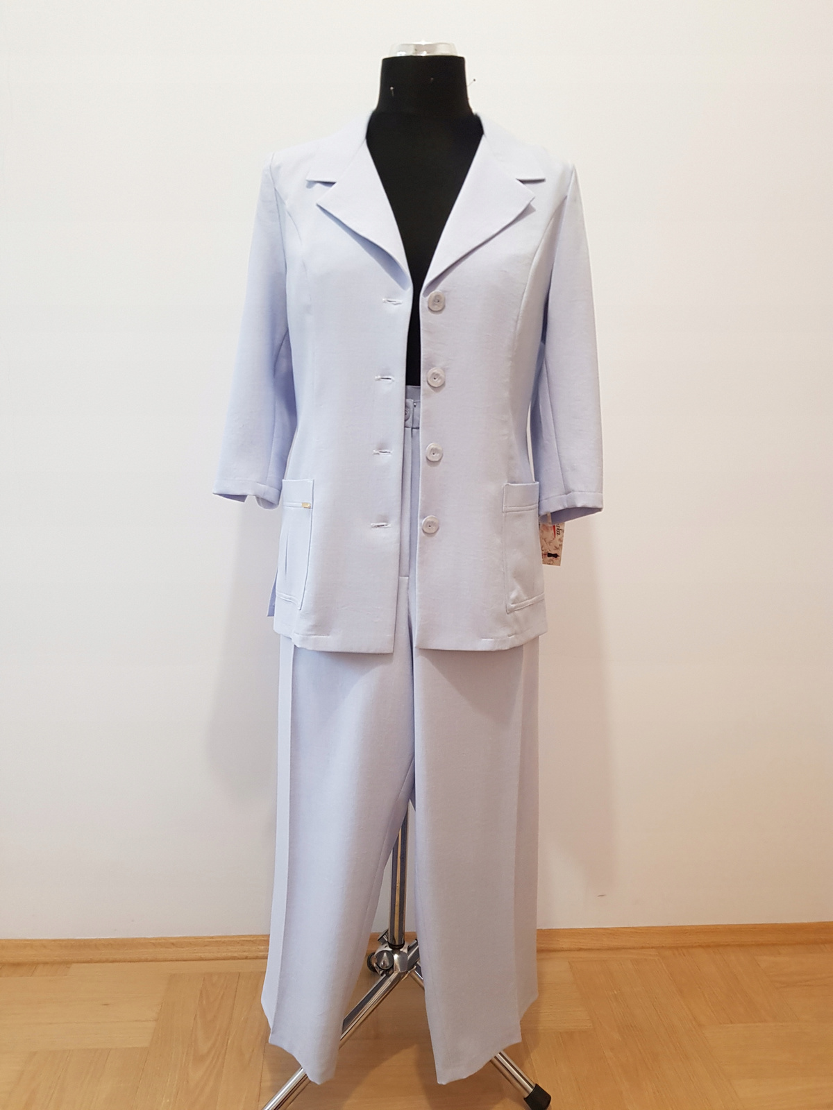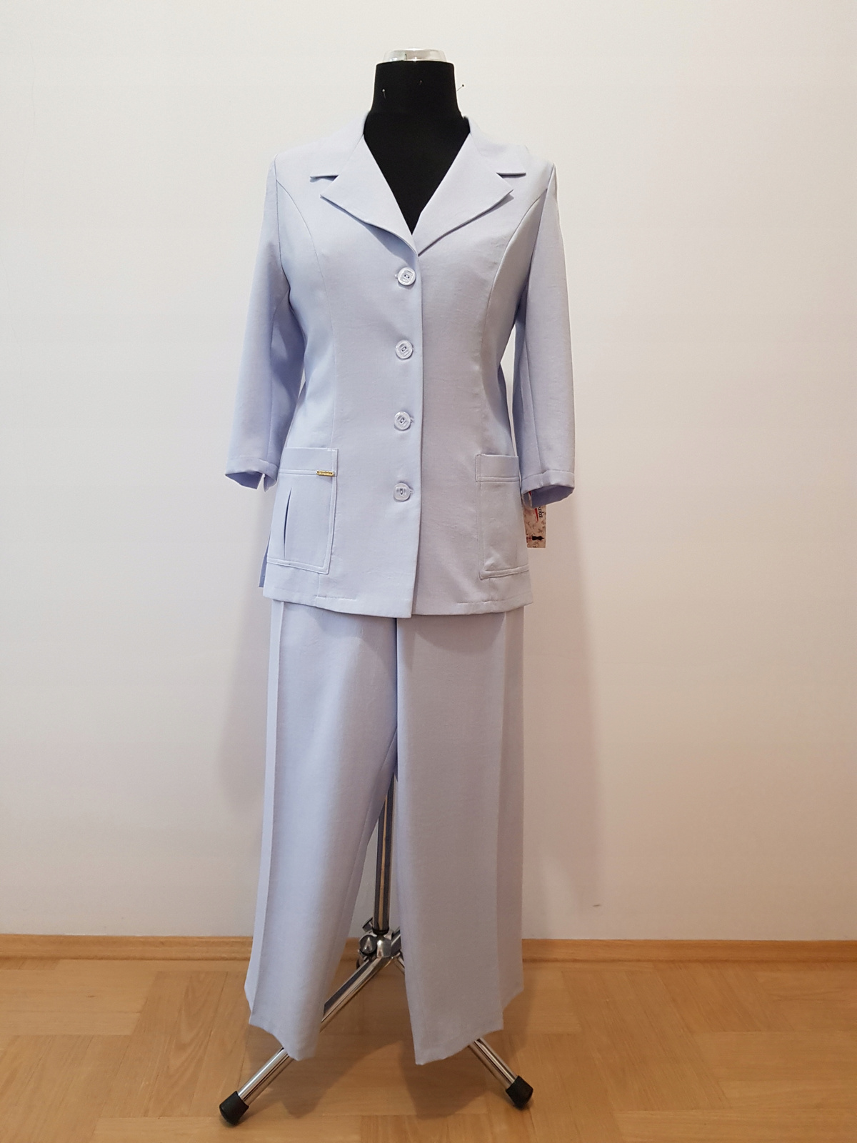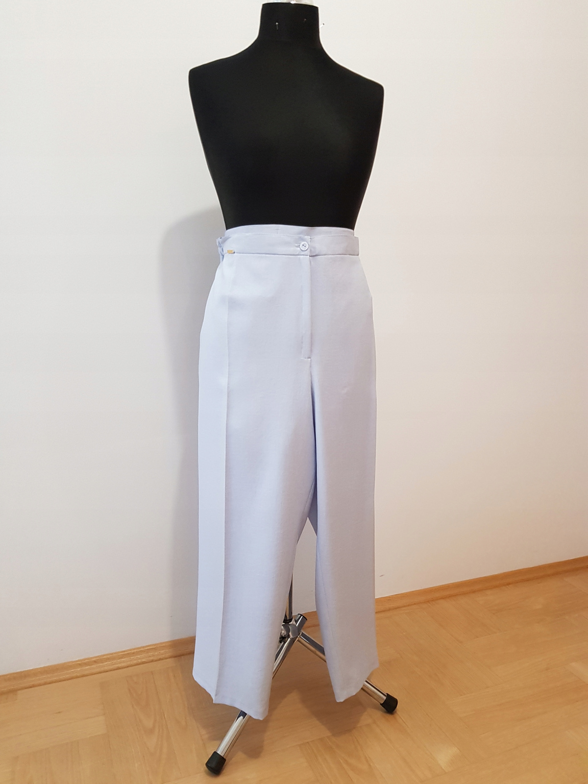 Spodnie klasyczne z zaprasowaną kantką, delikatnie zwężone do dołu.