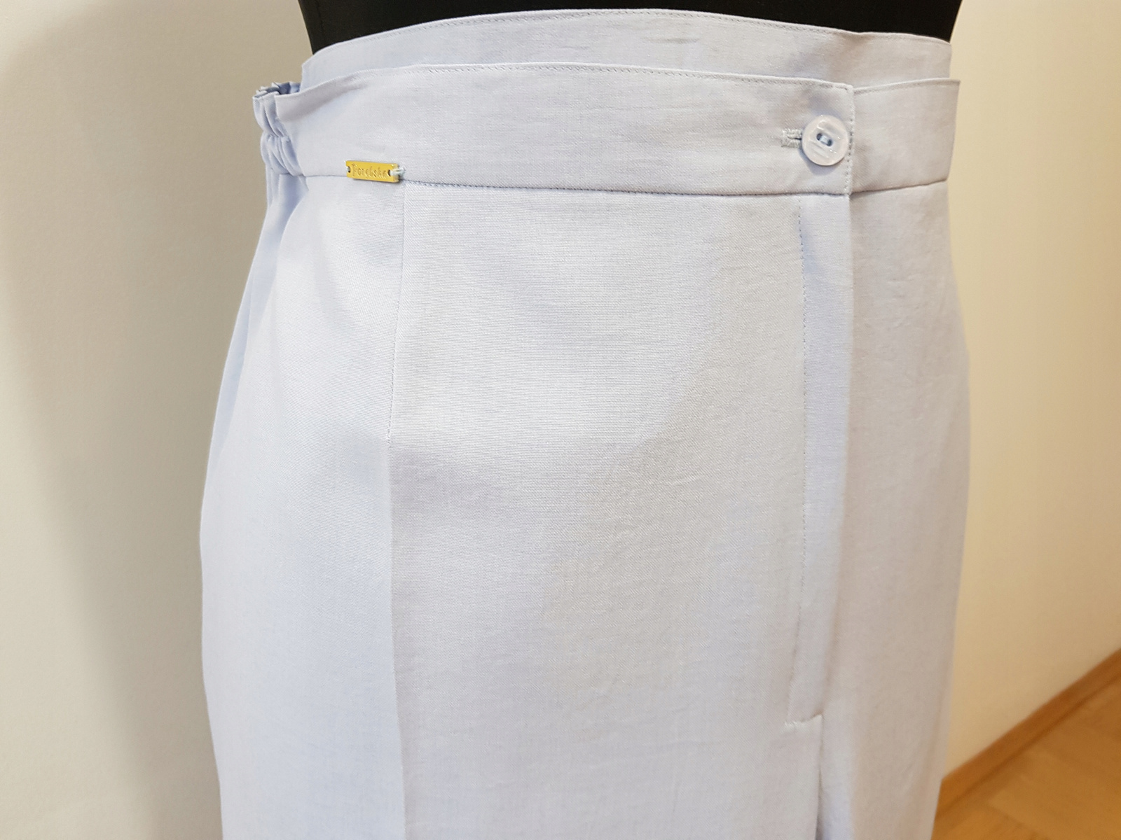 Spodnie klasyczne uszyte z ala-lnu Vintage w kolorze błękitnym.
