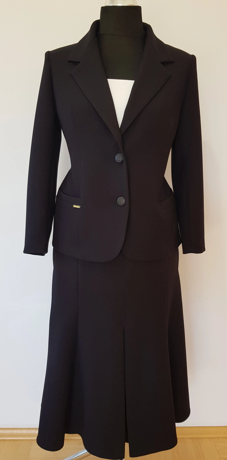 Bardzo ładny kostium uszyty z tkaniny ,,jaguar" w kolorze czarnym.