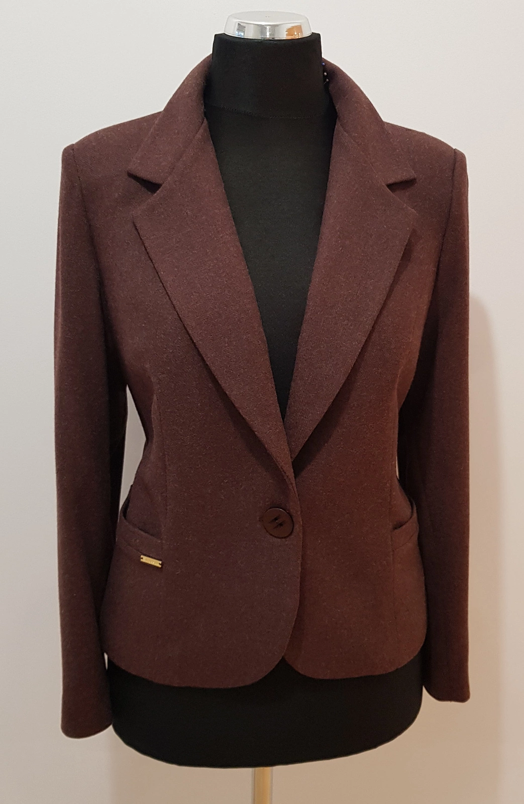 Bardzo ładny żakiet uszyty z kostiumowej tkaniny z dodatkiem wełny. .
