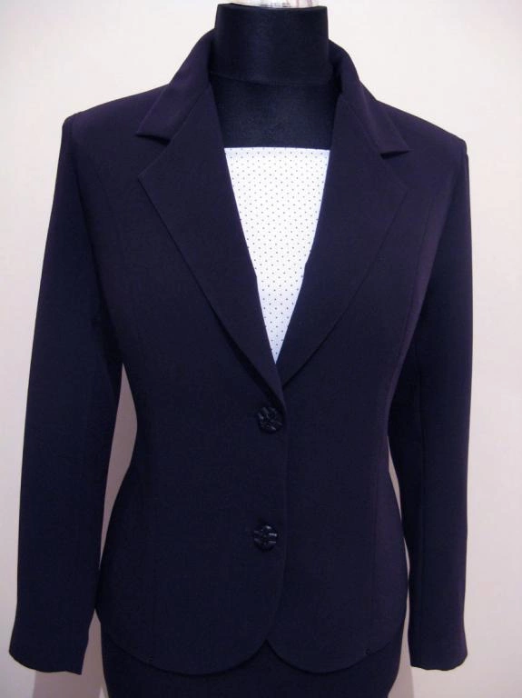 Bardzo ładny klasyczny żakiet uszyty z tkaniny merino w kolorze granatowym.