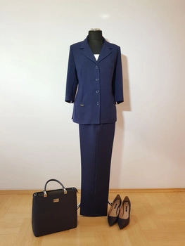 Żakiet safari ze spodniami uszyty z tkaniny kostiumowej ,, alalen'' w kolorze granatowym.